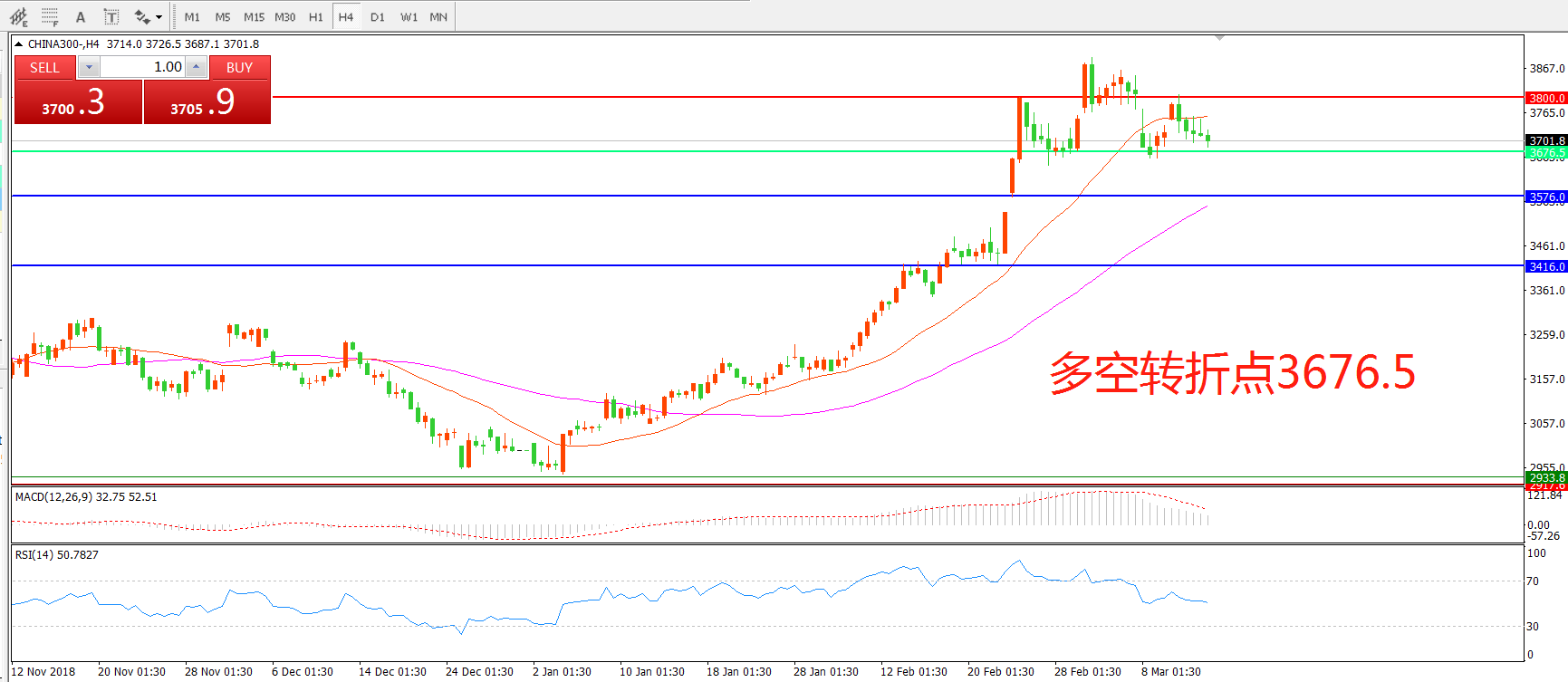 中华指数300CHINA3004小时图