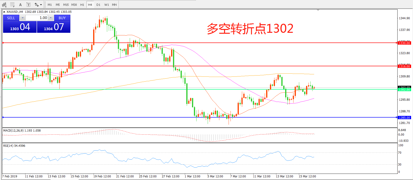 多空转折点:1302.00