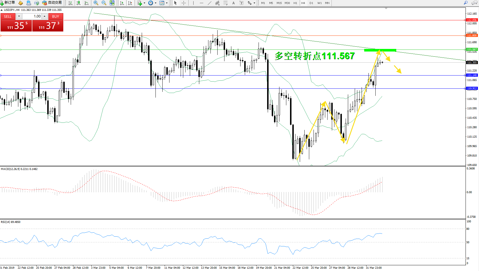 交易策略:111.567下方看跌,目标111.140110.922
