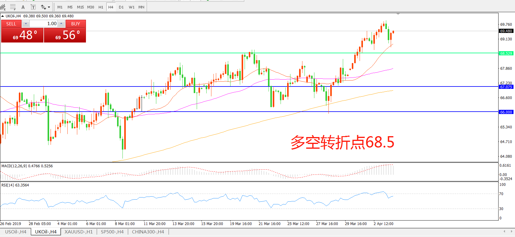多空转折点:68.50