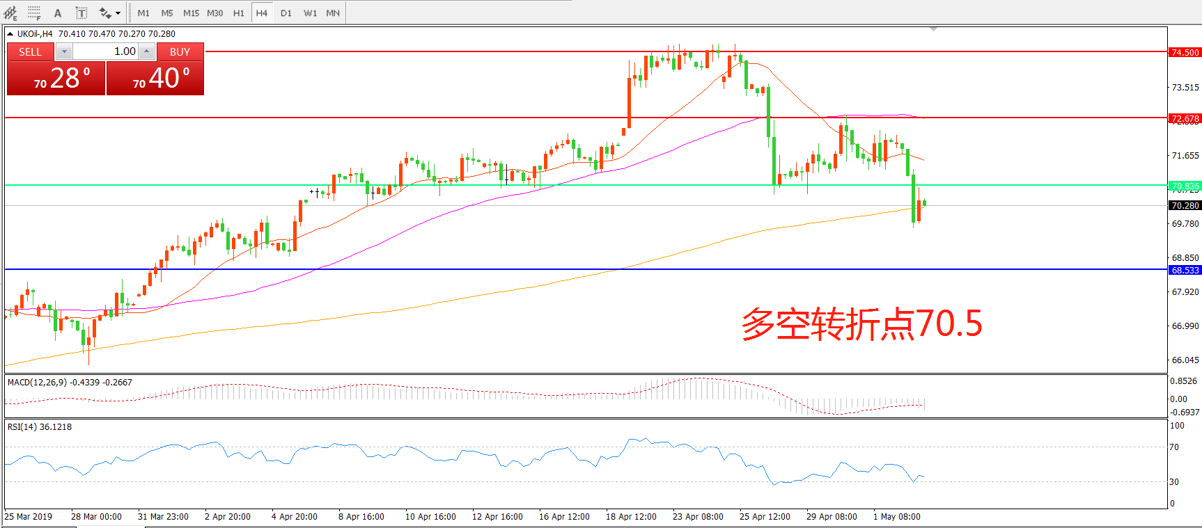多空转折点:70.50