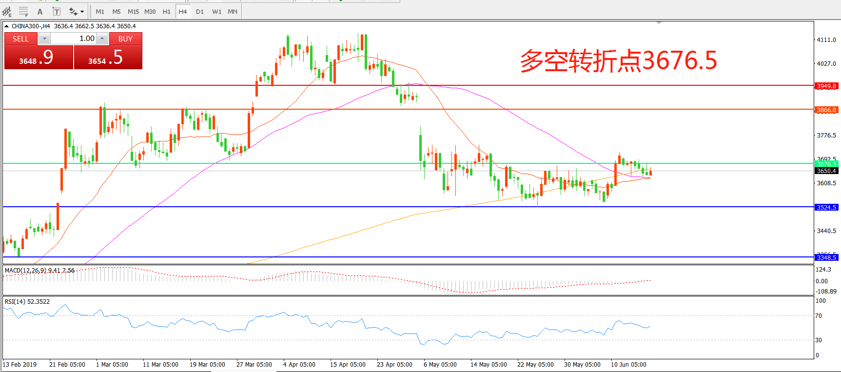 多空转折点:3676.50