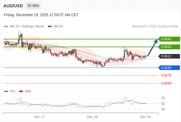 在 0.6590 之上,看涨,目标价位为 0.6630 ,然后为 0.6645 。