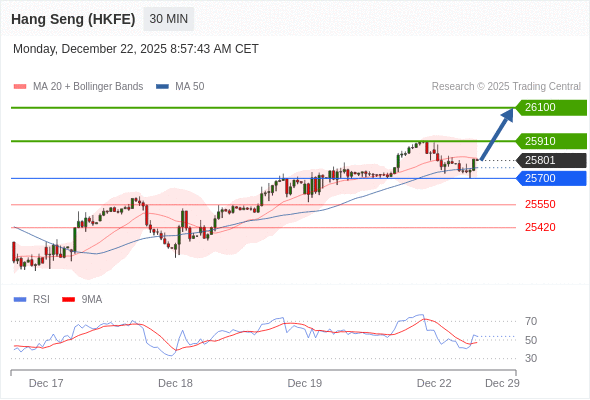 在 25700 之上,看涨,目标价位为 25910 ,然后为 26100 。