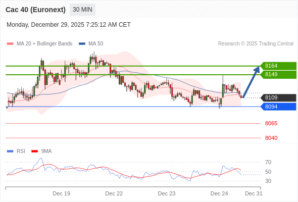 在 8094 之上,看涨,目标价位为 8149 ,然后为 8164 。