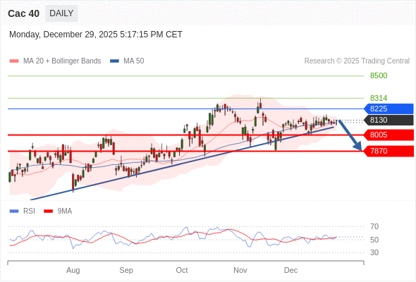 Cac 40 短线: 短期调整。