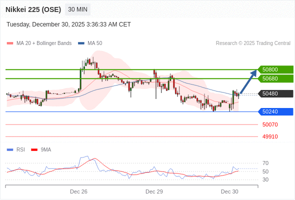 在 50240 之上,看涨,目标价位为 50680 ,然后为 50800 。
