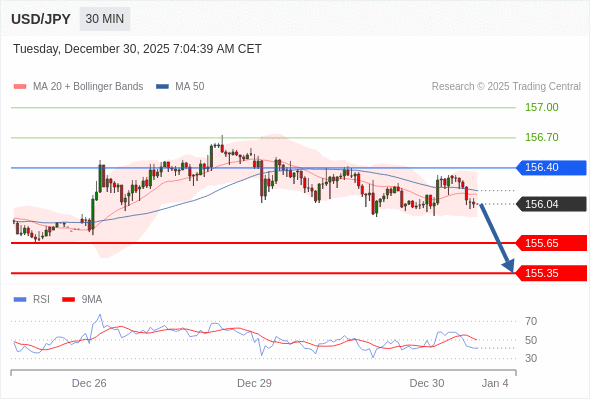 在 156.40 之下,看跌,目标价位为 155.65 ,然后为 155.35 。