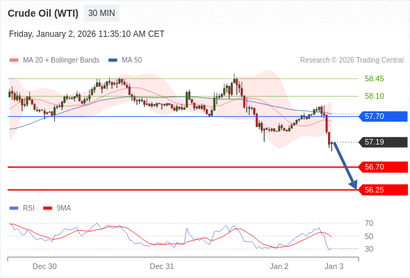 在 57.70 之下,看跌,目标价位为 56.70 ,然后为 56.25 。