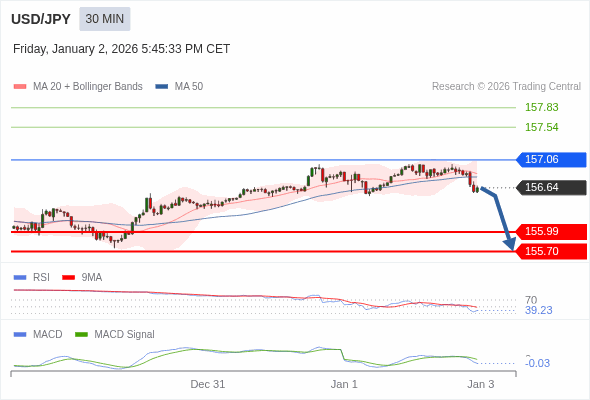 美元/日元 当日内 : 看跌,在 157.06 之下。
