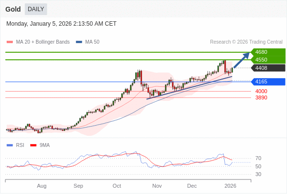 交易策略: 在 4165 之上,看涨,目标价位为 4550 ,然后为 4680 。