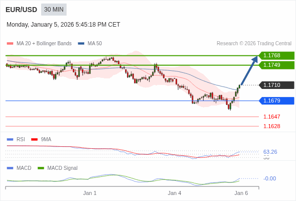 欧元/美元 当日内 : 看涨,当 1.1679 未被跌破。
