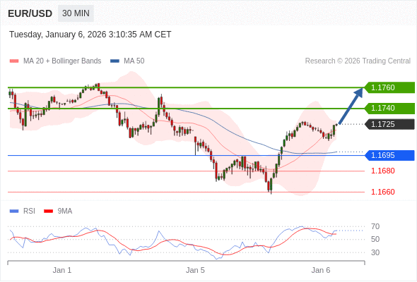 在 1.1695 之上,看涨,目标价位为 1.1740 ,然后为 1.1760 。