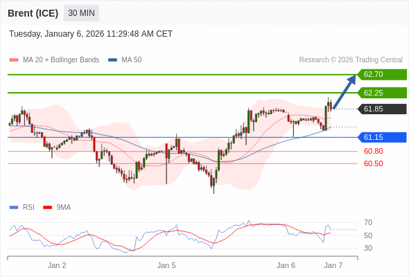 在 61.00 之上,看涨,目标价位为 62.25 ,然后为 62.70 。