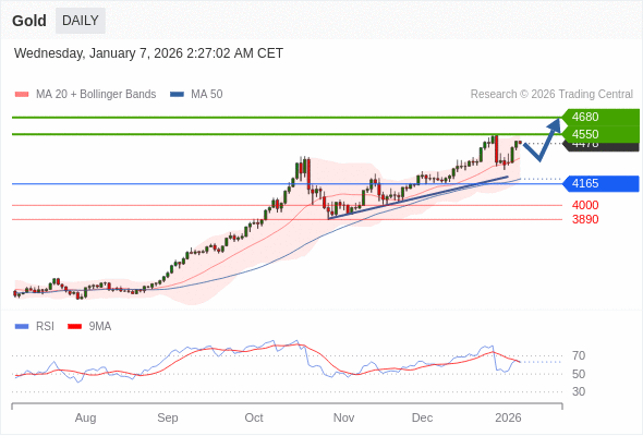 在 4165 之上,看涨,目标价位为 4550 ,然后为 4680 。