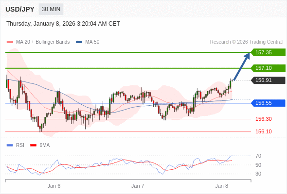 在 156.55 之上,看涨,目标价位为 157.10 ,然后为 157.35 。