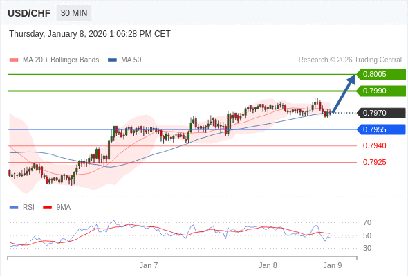 在 0.7955 之上,看涨,目标价位为 0.7990 ,然后为 0.8005 。