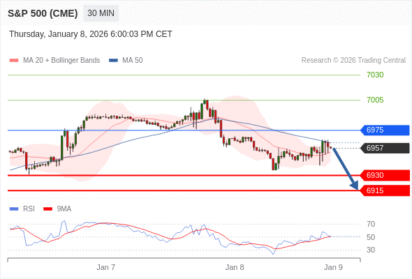 美国标普500指数期货 (H6) 当日内: 短期关键阻力位在6975。