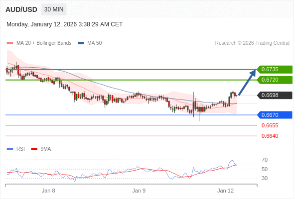 在 0.6670 之上,看涨,目标价位为 0.6720 ,然后为 0.6735 。