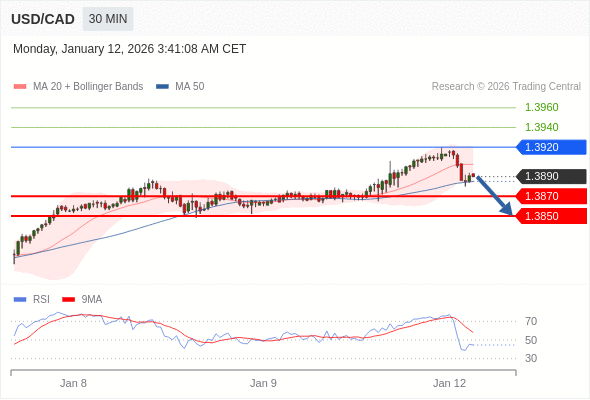 在 1.3920 之下,看跌,目标价位为 1.3870 ,然后为 1.3850 。