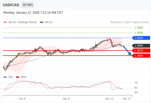 在 1.3920 之下,看跌,目标价位为 1.3870 ,然后为 1.3850 。