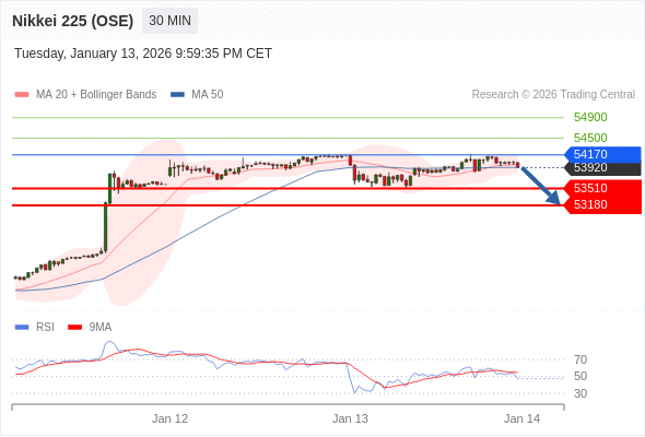 在 54170 之下,看跌,目标价位为 53510 ,然后为 53180 。