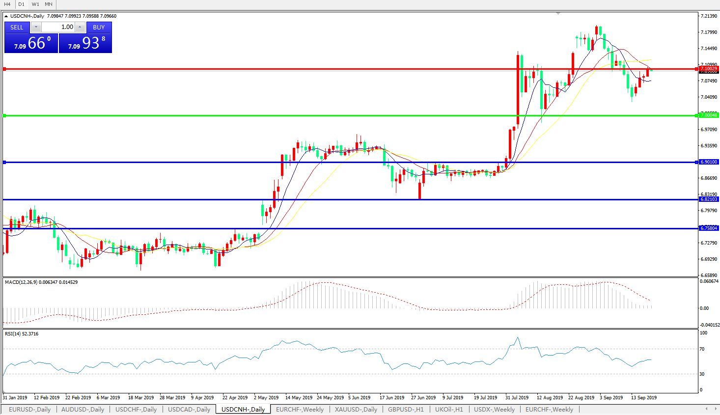 交易策略: 在7.0000之上,看涨,目标价位为7.1000,然后为7.2000。