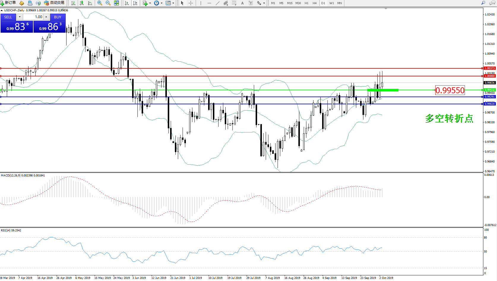 交易策略:0.99550上方看涨,目标1.00080、1.00373