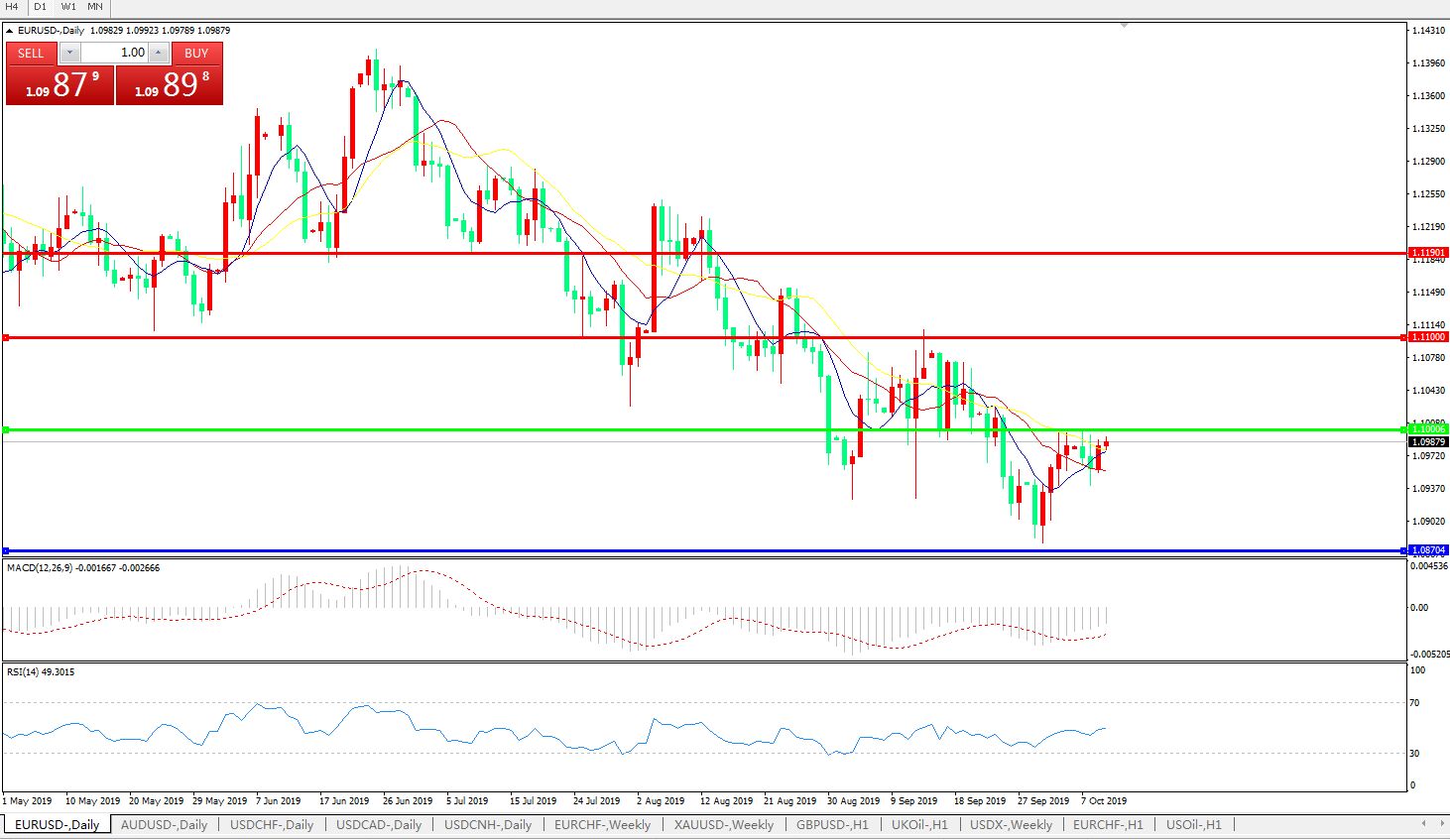 交易策略:1.1000下方看跌,目标1.0870、1.0700