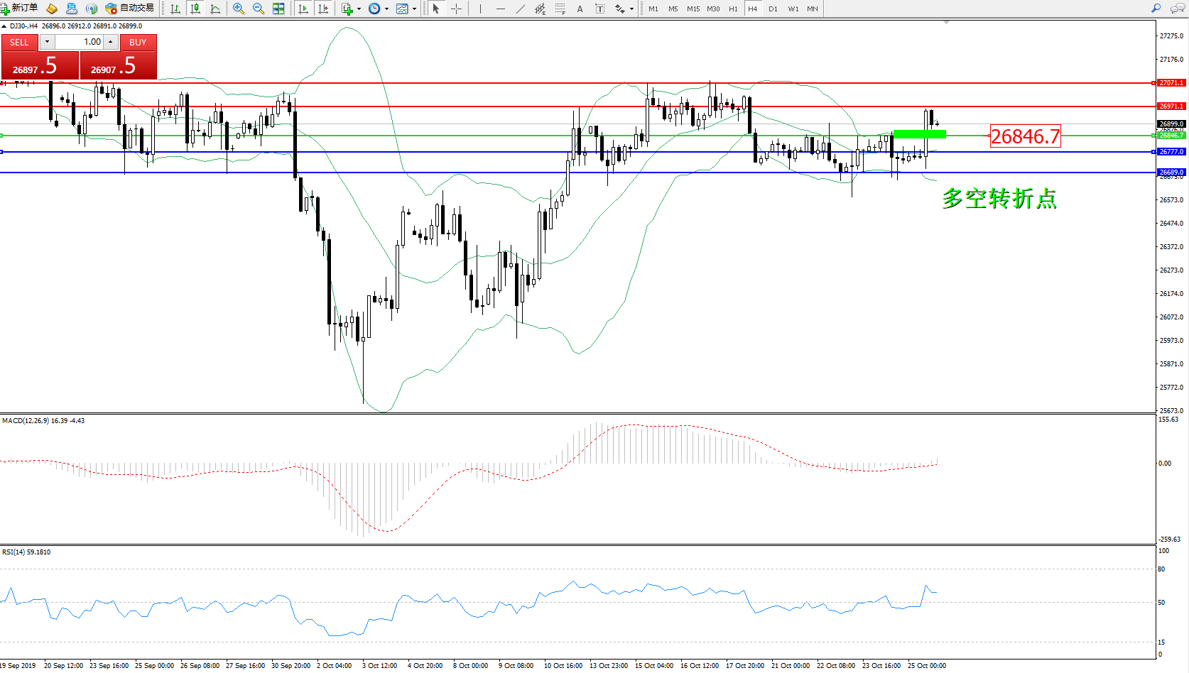 交易策略:26846上方看涨,目标26971、27071