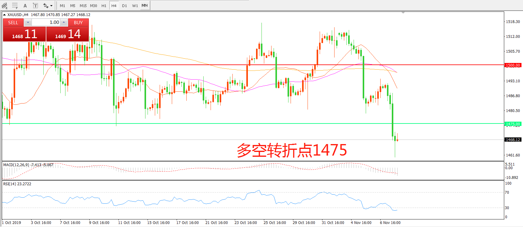 交易策略:在1475.00之下看跌,目标1450.00 1400.00