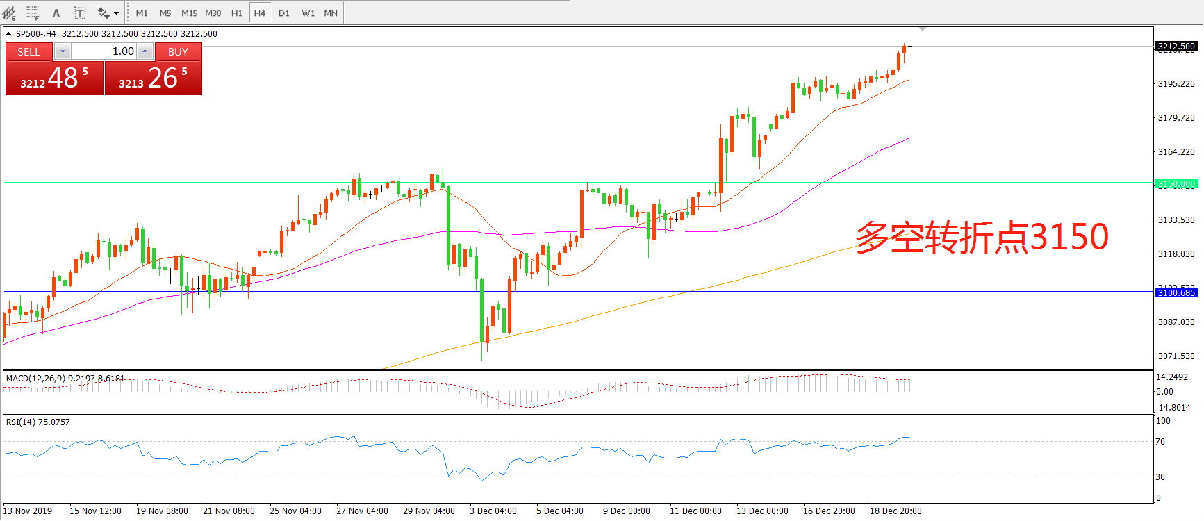 多空转折点:3150.00