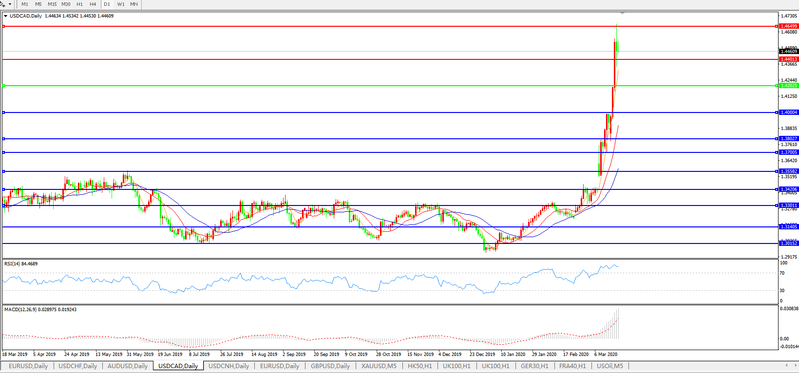 美元兑加元USDCAD    日线图: