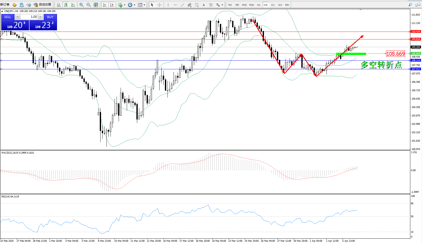 交易策略:108.669上方看涨,目标109.818110.434