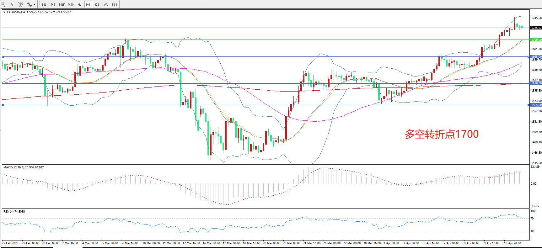 交易策略:在1700.00之上看涨,目标1750.00 1785.00