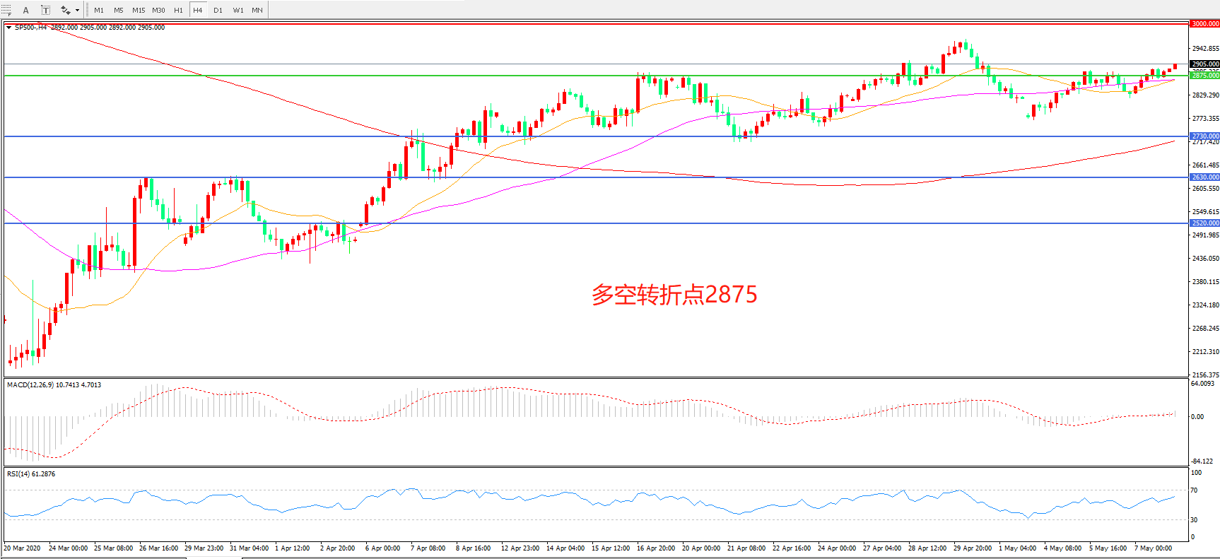 多空转折点:2875.00