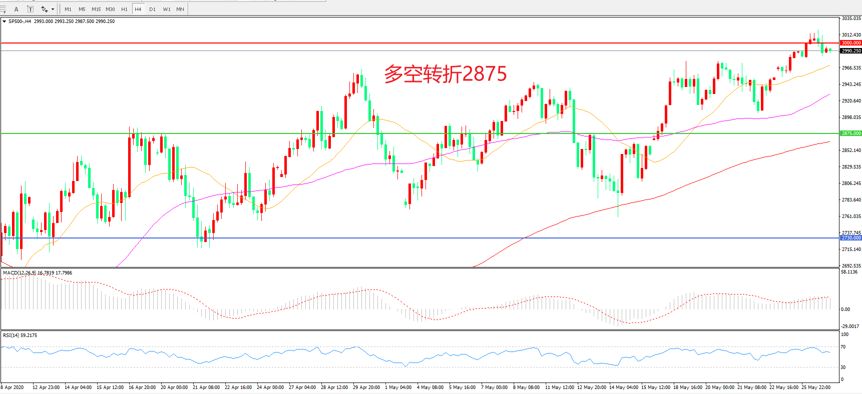 多空转折点:2875.00