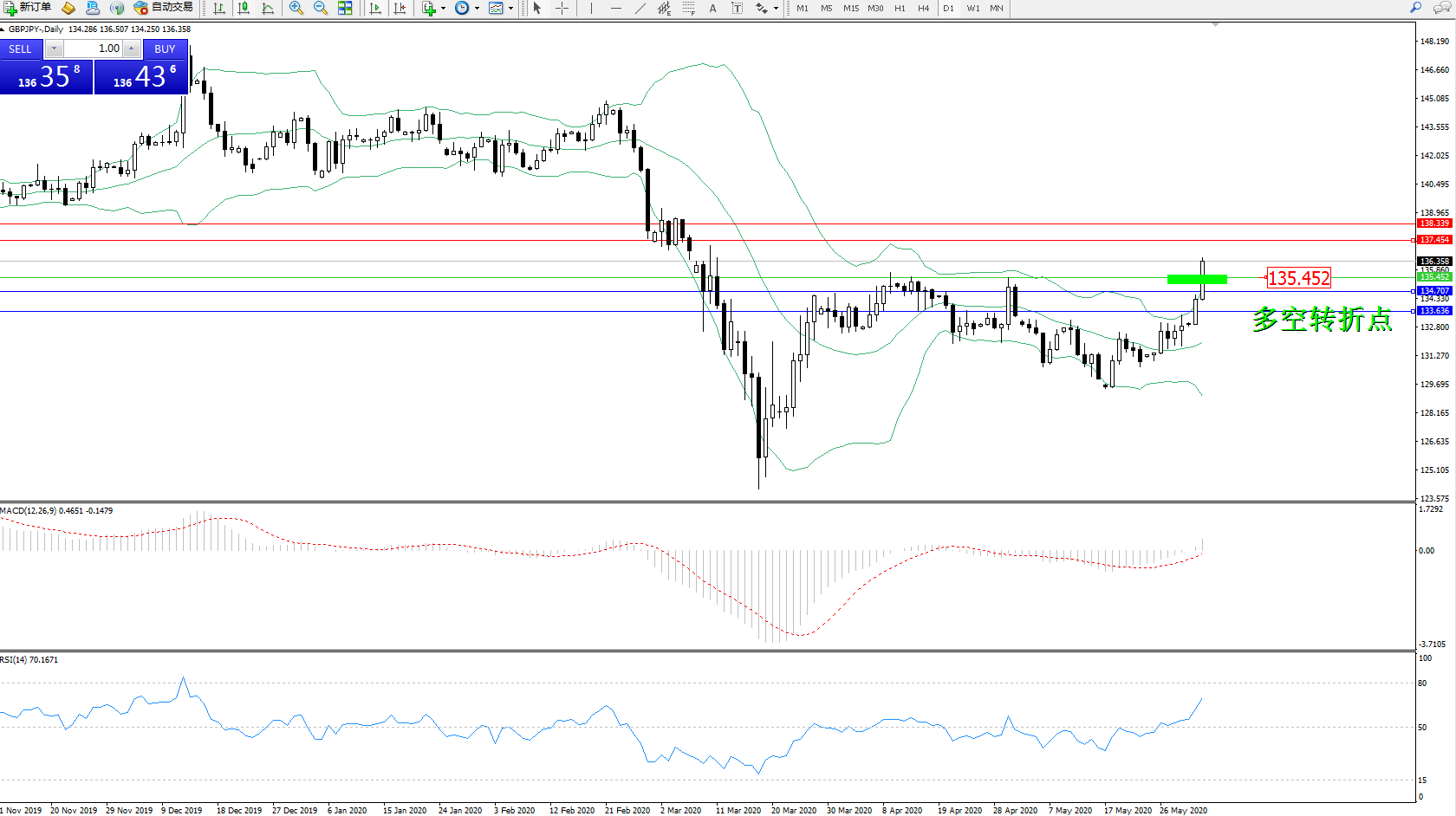 英镑兑日圆上行至136.320附近徘徊,英欧未来关系谈判第四轮将在当地时间14点30分(北京时间20点30分)开始,双方将在2日到5日的四天时间中,就渔业、公平竞争环境和航空与能源等方面展开谈判,预计谈判将在当地时间5日中午12点30分(北京时间18点30分左右)结束。第四轮谈判作为6月底前的最后一轮谈判,如果双方无法达成一致意见,将为接下来半年的谈判带来空前的压力以及增加英国无具体后续安排脱离欧洲的风险。