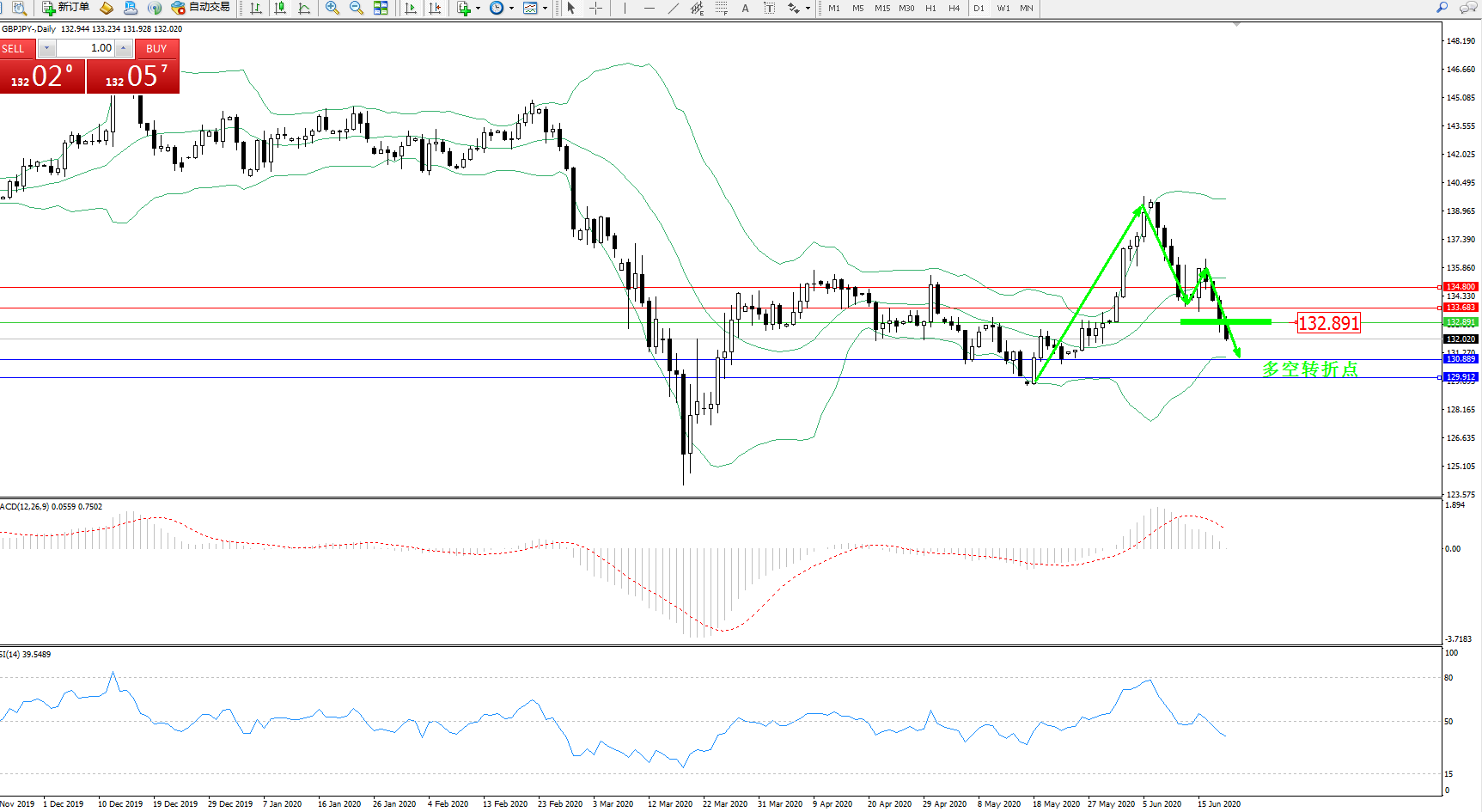 交易策略:132.891下方看跌,目标130.889129.912