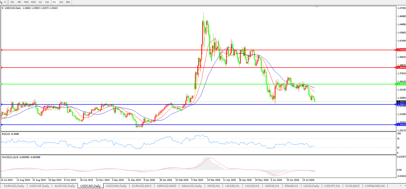 美元兑加元USDCAD 日线图:
