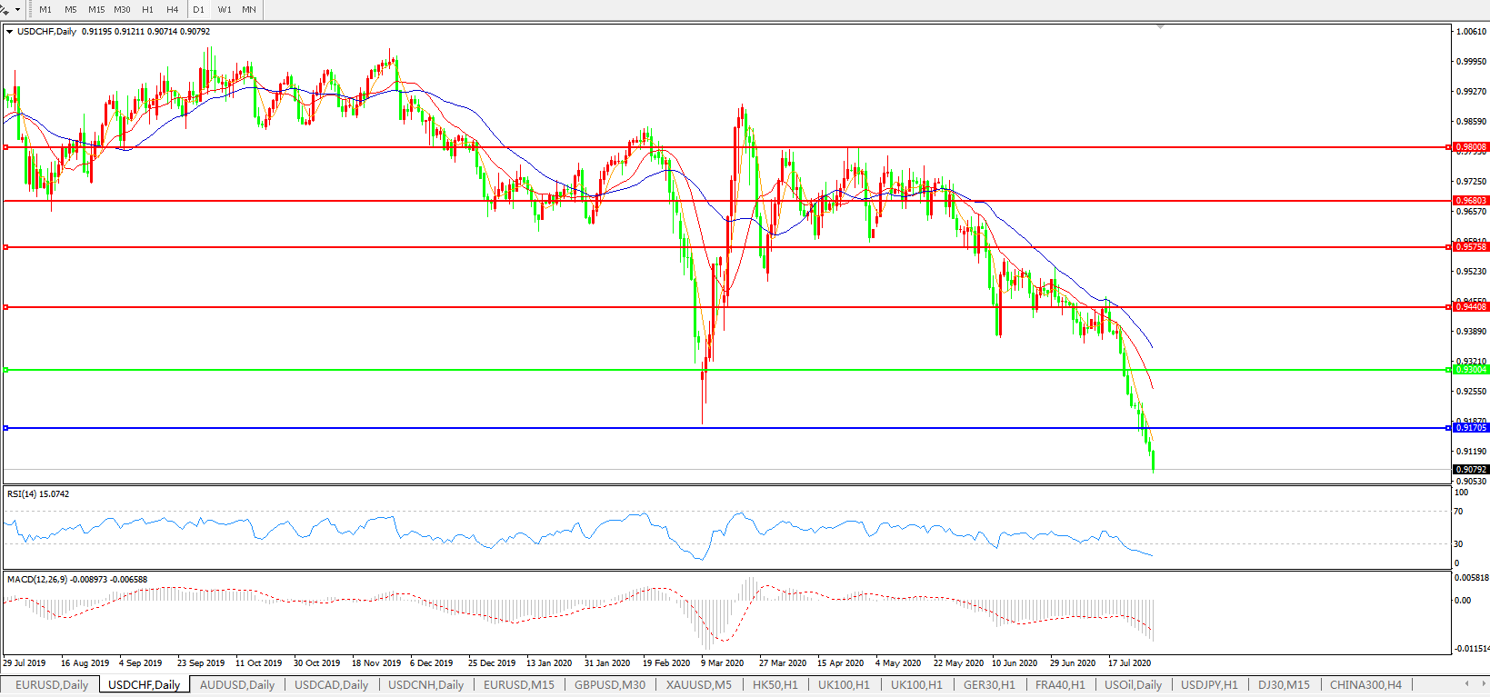 美元兑瑞郎USDCHF    日线图: