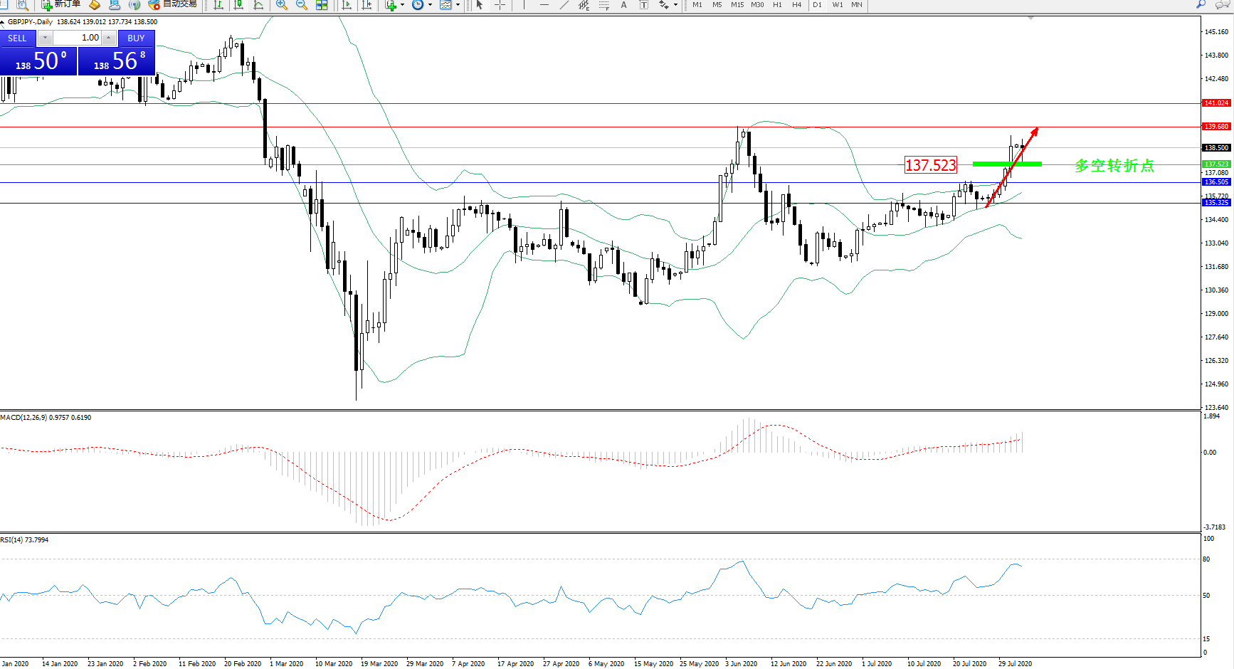 交易策略:137.523上方看涨,目标139.680、141.024