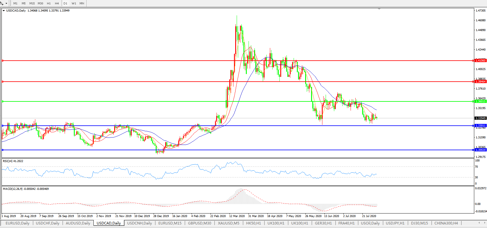 美元兑加元USDCAD    日线图:
