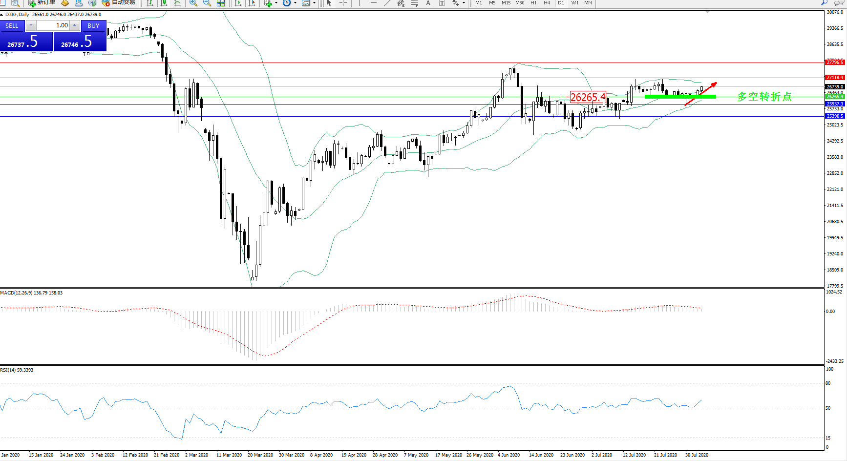 技术点评:低位多头动力延续布林带指标中上轨区间持续震荡向上移动态势良好,长时间维持在中轨附近整理后出现快速下挫至下轨附近急速拉升,且多次来回震荡,回升至中轨附近徘徊,关注中轨附近转折点,布林带指标呈向上移动趋势持续拉升中,且波幅空间逐渐收窄,MACD指标处于0轴线上方多头区域持续整理后开始平移走势中,RSI指标处于50均衡线上方多头区域持续整理后短暂回撤后有再次拉升迹象;