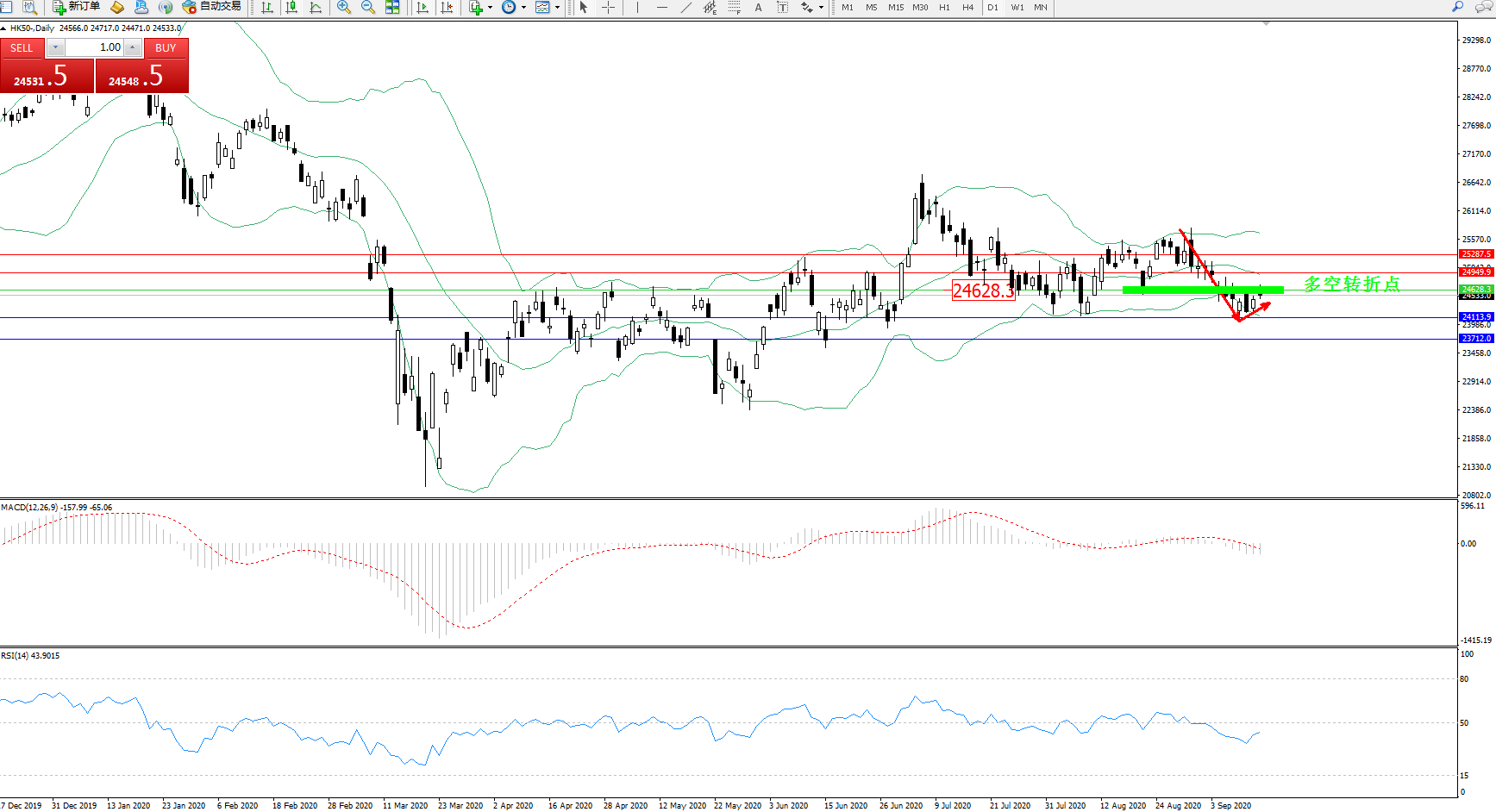 恒指HK50 ——日K线图显示: