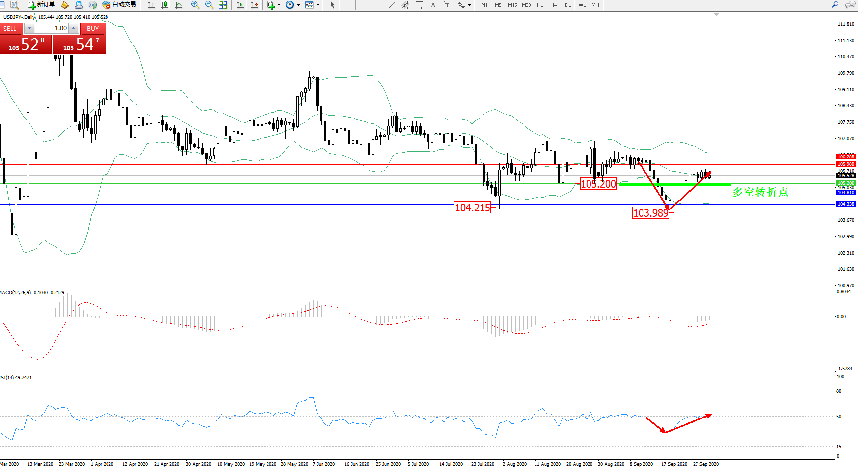 多空转折点:105.200