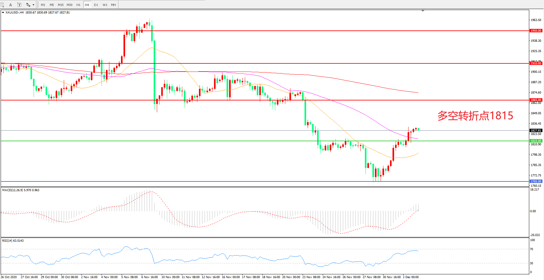 多空转折点:1815.00