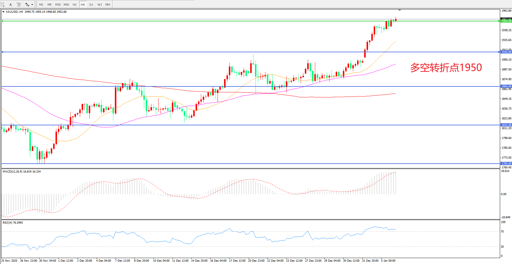 现货黄金XAU/USD    4小时图