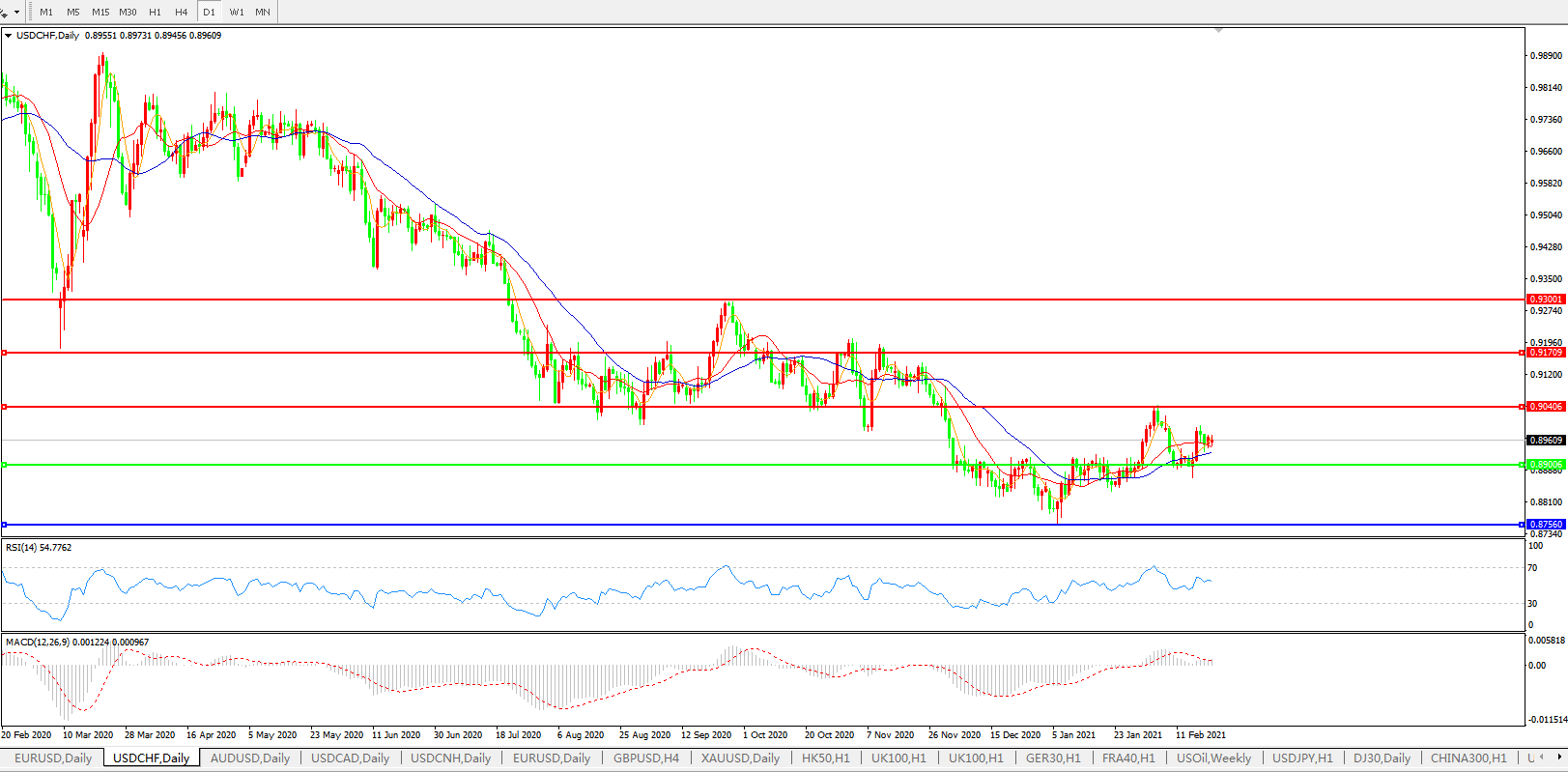 美元兑瑞郎USDCHF    日线图: