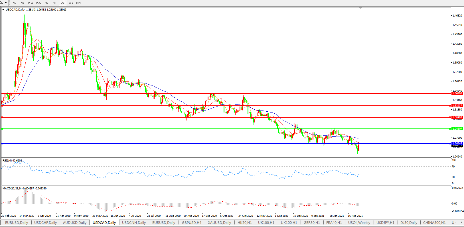 美元兑加元USDCAD    日线图: